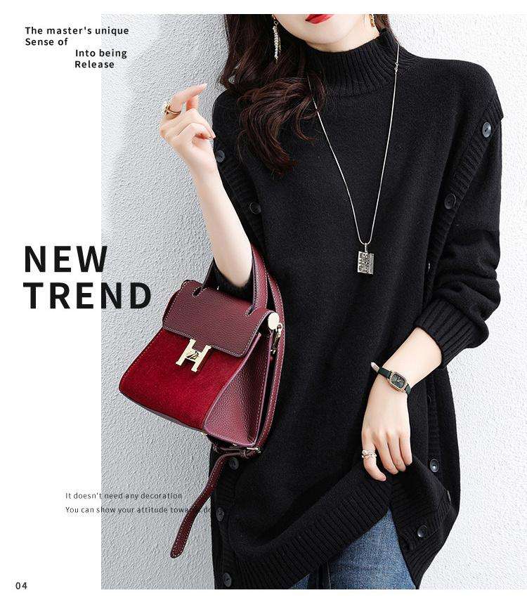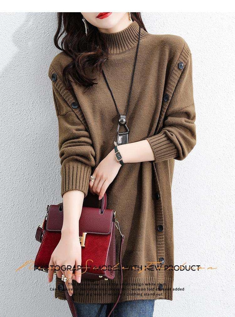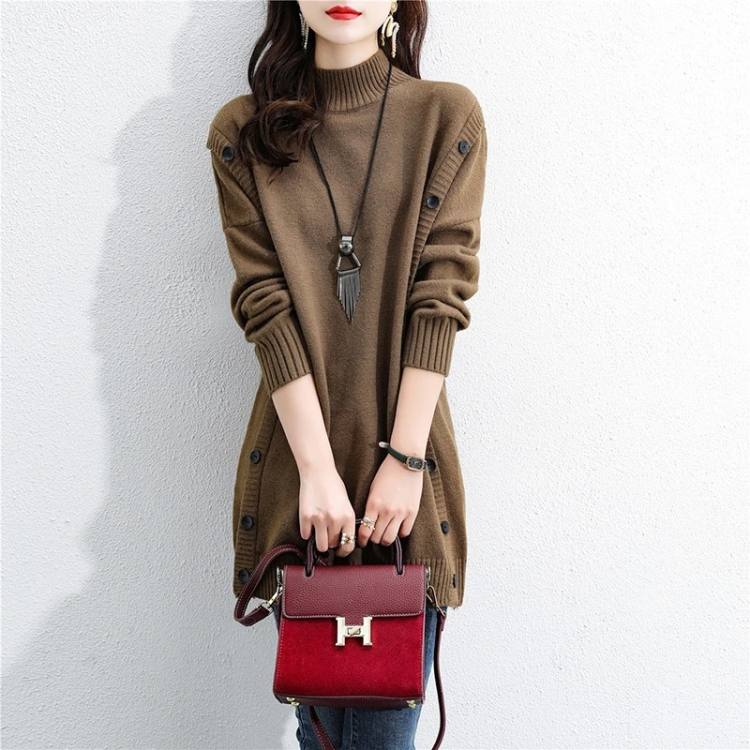2025秋冬新款韓版高領針織連衣裙洋氣時尚寬鬆加厚毛衣裙HK$ 319 -
