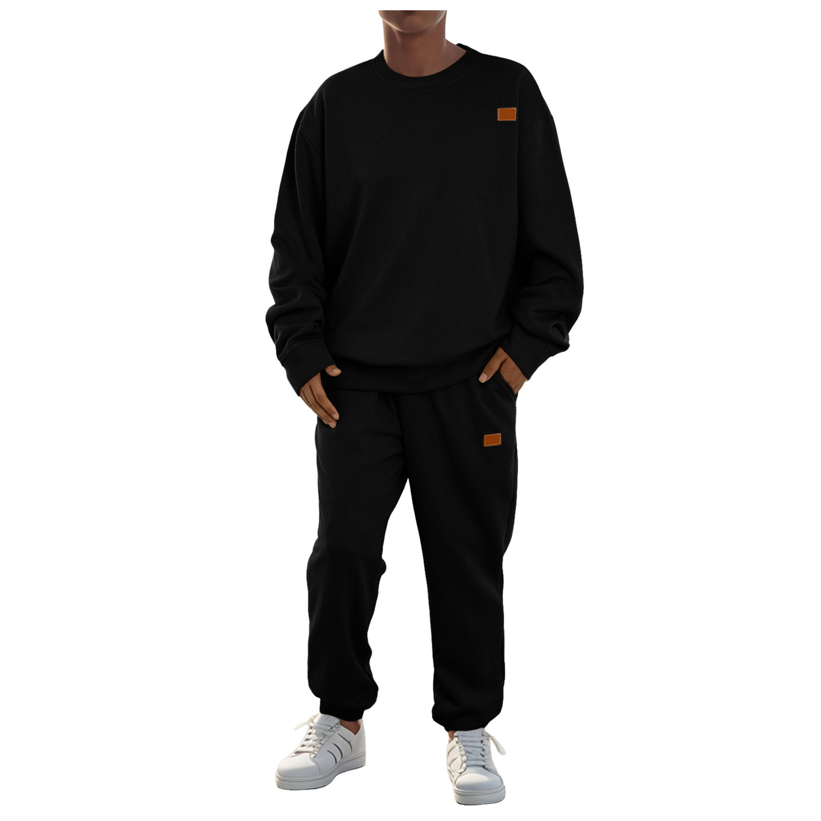 TAPERED CUFFS FOR MODERN FIT – The joggers’ tapered cuffs provide a clean, contemporary silhouette that complements the overall design. This feature prevents excess fabric from bunching around the ankles while enhancing mobility. The cuffs also contribute to a stylish, streamlined appearance, making the set suitable for various occasions.